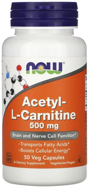 Acetyl-L-karnitín 500 mg Now Foods. Je aminokyselina, ktorá podporuje produkciu bunkovej energie tým, že pomáha pri transporte tuku do mitochondrií, kde sa premieňa na "bunkové palivo".